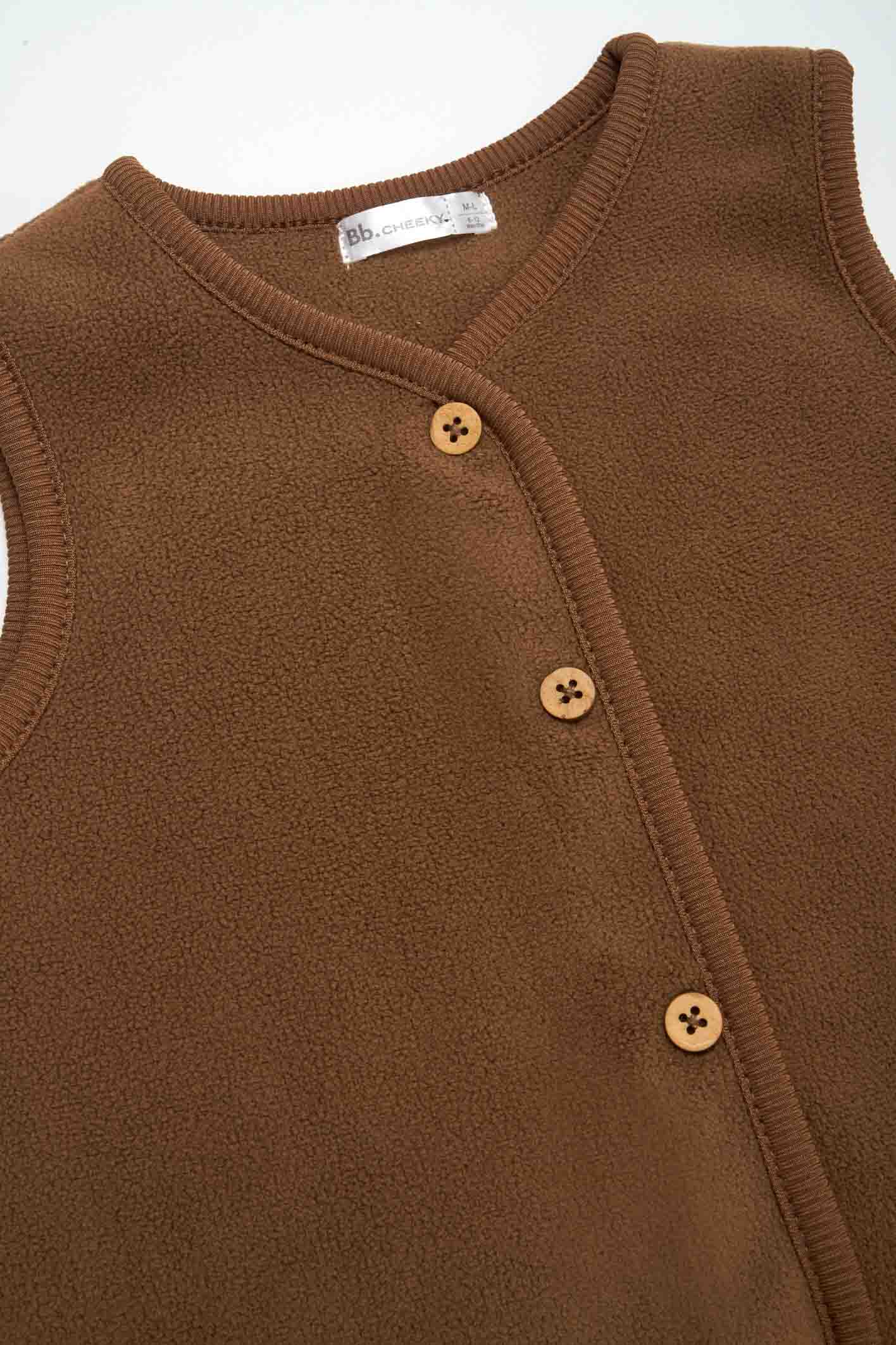 Chaleco Andy, un chaleco de polar bondeado con botones que combina comodidad y estilo. Con una composición de 95% poliéster y 5% elastano, este chaleco es perfecto para mantener a tus hijos abrigados y a la moda en cualquier ocasión.