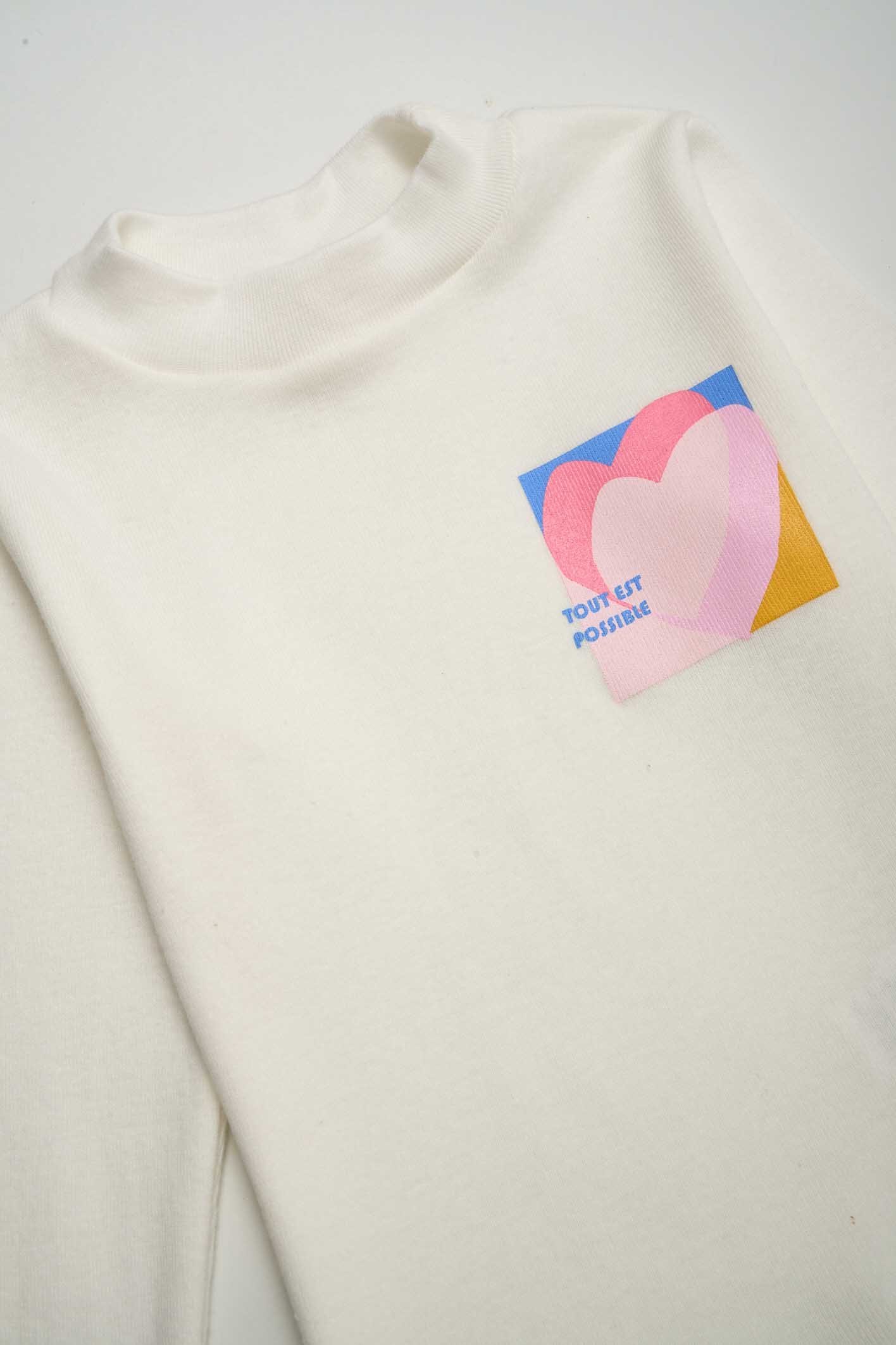 La Remera Jane es una prenda de manga larga, con cuello redondo y calce regular corta, ideal para el uso diario de tus hijos. Confeccionada en 100% algodón, ofrece comodidad y estilo, destacándose por su arte de posición logo.