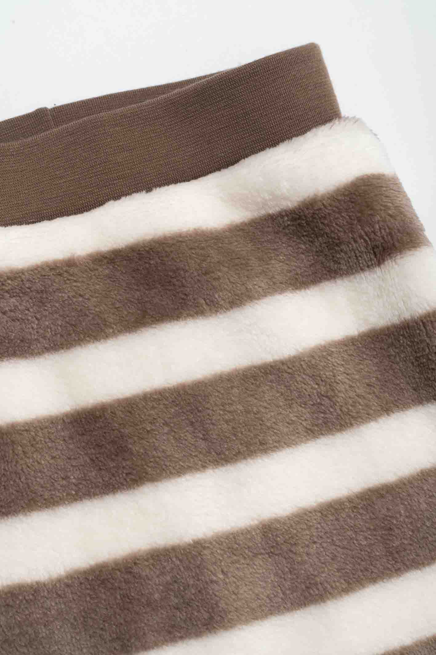El Pantalon Nano es un cómodo pantalón de polar soft, diseñado con un atractivo estampado de rayas a dos colores. Su cintura elástica en jersey asegura un ajuste perfecto, ideal para que tus hijos se sientan libres y a la moda en cualquier ocasión.